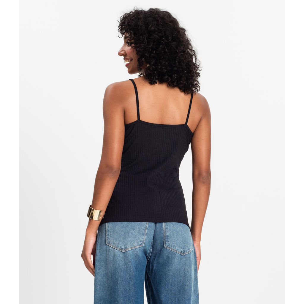 Blusa De Alça Feminina Ribana Canelada Rovitex Preto