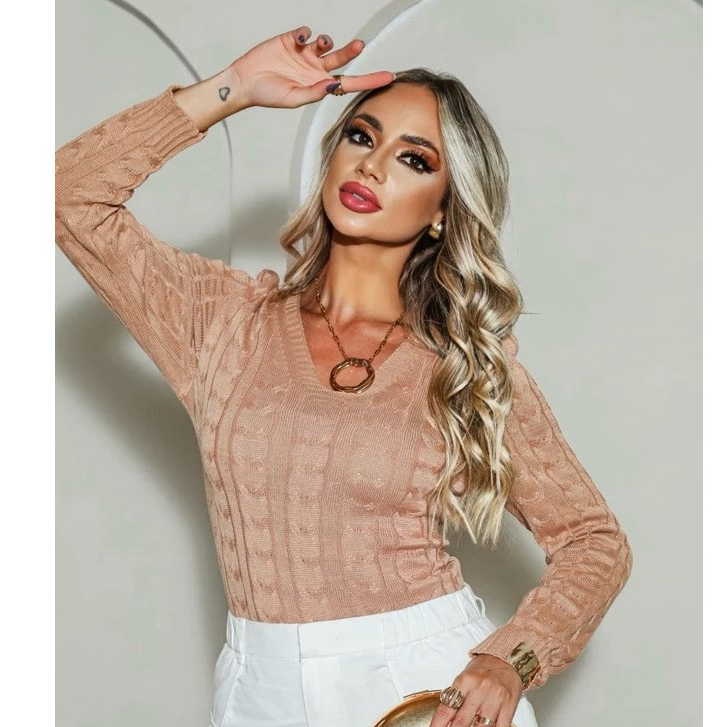 Blusa de Frio Feminina em Tricot – Detalhe Trançado e Decote V Casual A escolha ideal para quem busca conforto e estilo nos dias frios . Com um design exclusivo, que combina o clássico detalhe em trança com um decote em V elegante , essa blusa adiciona sofisticação ao seu visual de inverno. Confeccionada em 100% poliéster , oferece caimento leve e confortável, perfeita para diversas ocasiões. 🔹 Diferenciais do Produto: • Detalhe em Trança que valoriza o design • Decote V para um toque de sofisticação • Conforto e estilo nos dias frios • 🏷️ Produção própria com qualidade garantida • 🚀 Pronta entrega: postagem imediata 🔹 Detalhes Técnicos: • Material: 100% Poliéster • Tamanho: Único 🔹 Especificações de Uso: • Lavagem comum • Secar à sombra em ambiente arejado Por que você vai amar? • Elegância e conforto em uma peça única • Versátil para criar looks casuais ou mais sofisticados • Design exclusivo que valoriza detalhes e acabamento 🛍️ Adicione já ao seu guarda-roupa e descubra o prazer de vestir-se com qualidade e sofisticação da Império Malhas