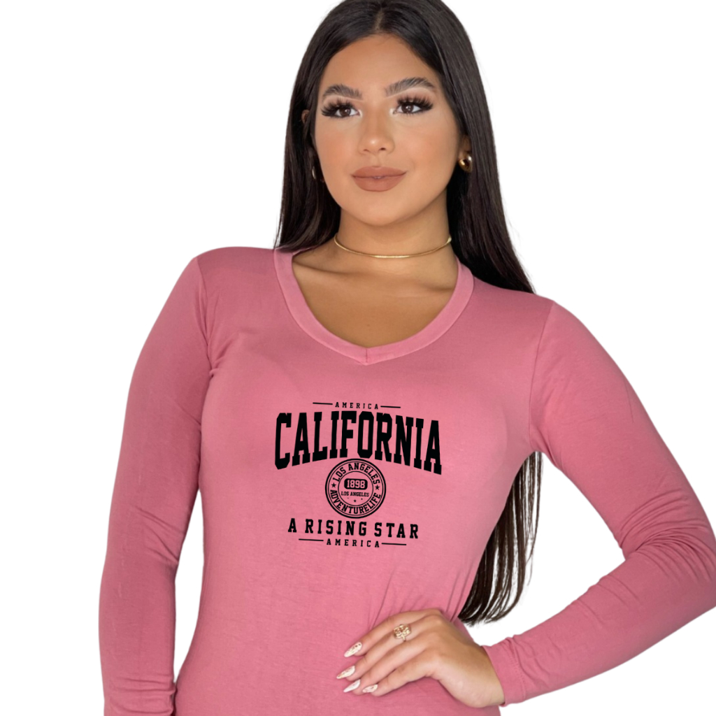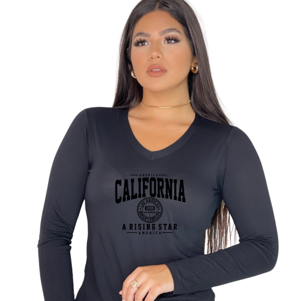 Blusa de Frio Feminina Estampada California Gola V Manga Longa Casual, Inverno
