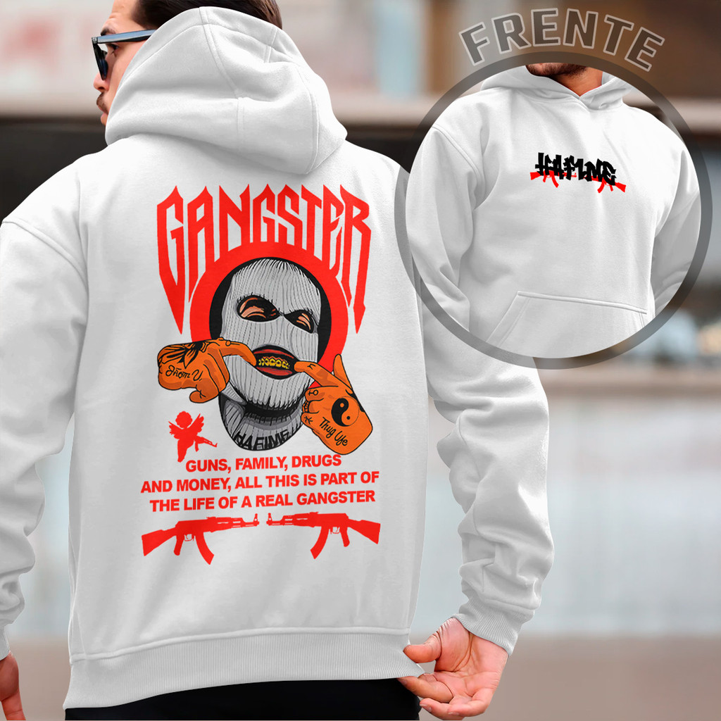 Blusa de Frio Moletom Canguru Gangster Casaco Com Capuz Unissex Plus Size P ao G4