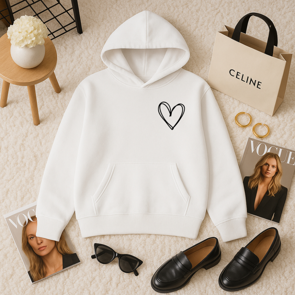 Blusa De Frio Moletom Feminina Coração No Peito Moletom Unissex Bolso Canguru Com Capuz Flanelado Tecido Algodão