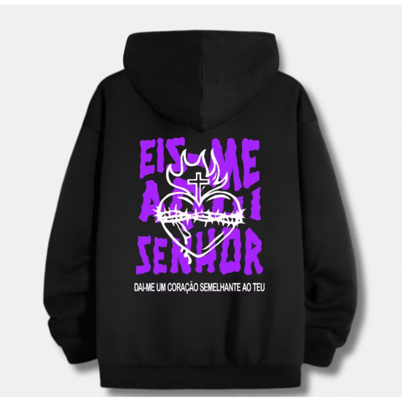 Blusa de Frio Unissex Moletom Canguru Eis-Me Aqui Senhor Cristã Jesus Fé Igreja Casaco Alta Qualidade Premium