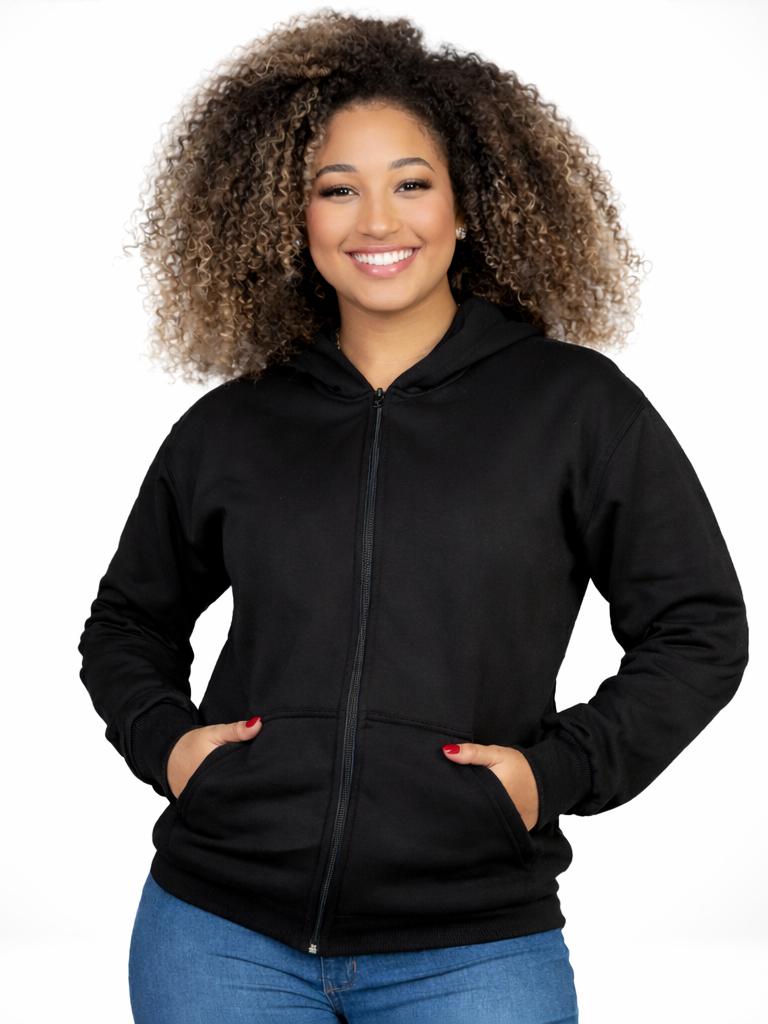 Blusa De Moletom Feminina Capuz Zíper Agasalho Frio Ziper