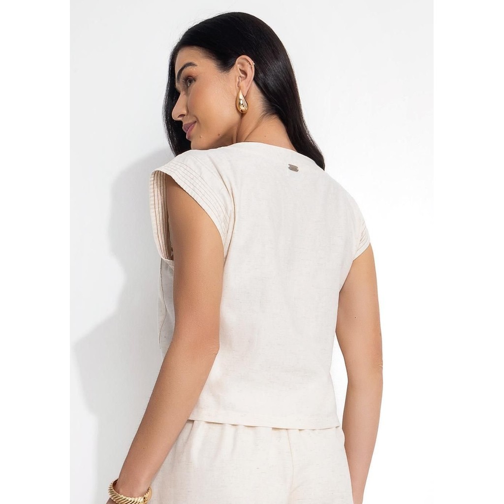 Blusa off white, modelagem solta, modelo alfaiataria, decote frente v, decote costas redondo, manga muscle tee, bolso, pespontos contrastantes, comprimento curto, fechamento em botões, material linho. Tendência: materiais/tecidos textura. Este produto é destinado apenas para consumidores finais (CPF). Não realizamos a venda para CNPJ. Características Gerais do Produto: Garantia: • 7 dias de garantia
