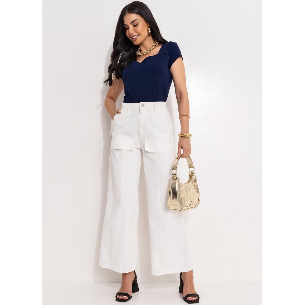 Blusa azul marinho modelagem justa com decote coração na frente e decote redondo nas costas. Mangas curtas e confeccionada em malha de viscose com elastano para máximo conforto e elegância. Perfeita para um look sofisticado e feminino!