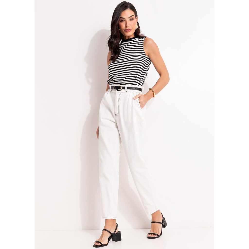 Blusa sem mangas, com listras horizontais em preto e branco. Modelagem reta e gola careca, trazendo um visual casual-chic. Versátil e confortável, ideal para compor looks elegantes e despojados. Tabela de Medidas: P (36 até 38): Busto: 80 até 88 cm | Cintura: 64 até 72 cm | Quadril: 88 até 96 cm M (40 até 42): Busto: 88 até 96 cm | Cintura: 72 até 80 cm | Quadril: 96 até 104 cm G (44 até 46): Busto: 96 até 100 cm | Cintura: 80 até 88 cm | Quadril: 104 até 112 cm GG (48 até 50): Busto: 104 até 116 cm | Cintura: 88 até 100 cm | Quadril: 112 até 124 cm XXG (52 até 54): Busto: 116 até 128 cm | Cintura: 100 até 112 cm | Quadril: 124 até 136 cm XLG (56 até 58): Busto: 128 até 140 cm | Cintura: 112 até 124 cm | Quadril: 136 até 148 cm. Este produto é destinado apenas para consumidores finais (CPF). Não realizamos a venda para CNPJ.