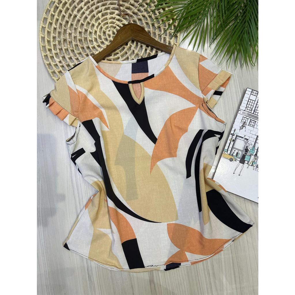 blusa estampado manga curto tecido crepinho bonito fashion