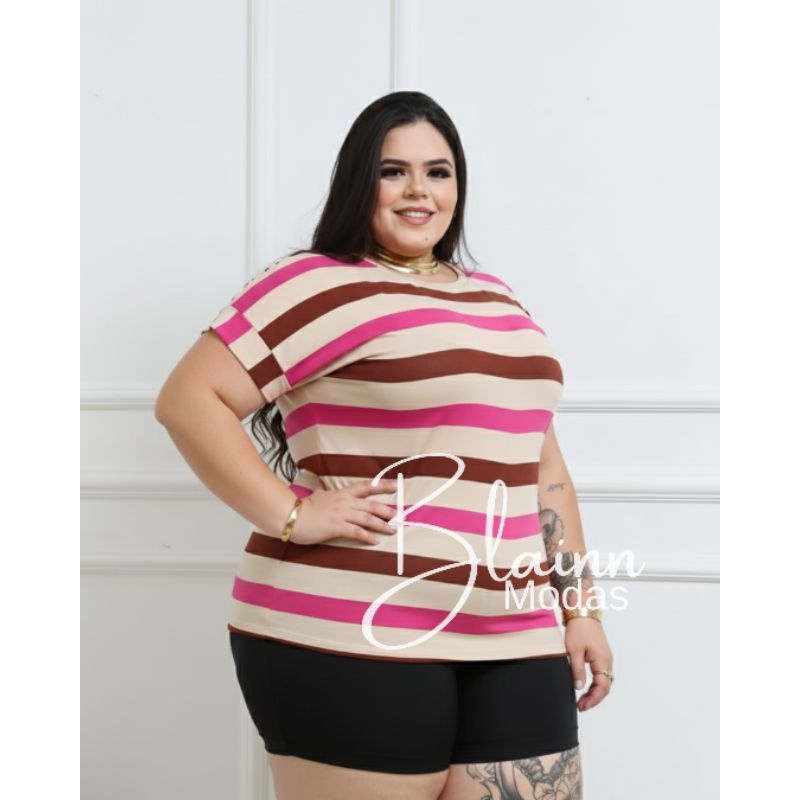 Blusa femenina plus size, manga dobrada casual viscolycra, GG, G1, G2, G3