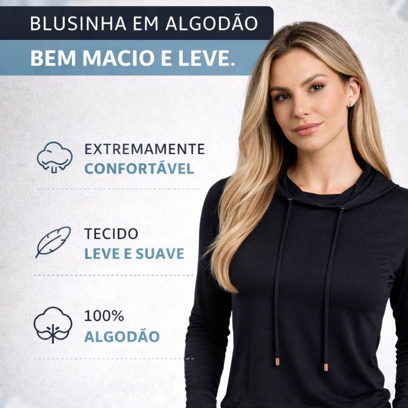 Blusa Capuz Premium Trendz - Lançamento Coleção 2026 ✨ POR QUE VOCÊ VAI AMAR ESTE LANÇAMENTO: Algodão 100% Sustentável: Fibra natural premium que deixa a pele respirar. Toque extremamente macio e frescor garantido o dia todo. Tecnologia Anti-Pilling: Fiação de alta resistência que impede a formação de bolinhas, mantendo o aspecto de roupa nova por muito mais tempo. Modelagem Conforto: Design com capuz "soft" e mangas longas com acabamento anatômico, proporcionando um caimento fluido que valoriza a silhueta. Versatilidade Total: Perfeita para meia-estação ou ambientes com ar-condicionado. Combina do jeans casual ao Esporte! 📏 GUIA DE TAMANHOS : Confira as medidas para garantir o seu caimento perfeito: P (38/40): Busto 46cm | Comprimento 58cm M (42): Busto 48cm | Comprimento 60cm G (44): Busto 50cm | Comprimento 62cm GG (46): Busto 52cm | Comprimento 64cm (Dica: A modelo das fotos veste M e tem caimento soltinho e elegante). 🚀 DIFERENCIAIS DA TRENDZ: FOTOS 100% REAIS: O produto que você recebe é exatamente o das fotos e vídeos. ENVIO FLASH: Logística integrada para que seu pedido chegue o mais rápido possível. COMPRA SEGURA: Não serviu ou não era o que esperava? A Shopee garante a sua Devolução Grátis.