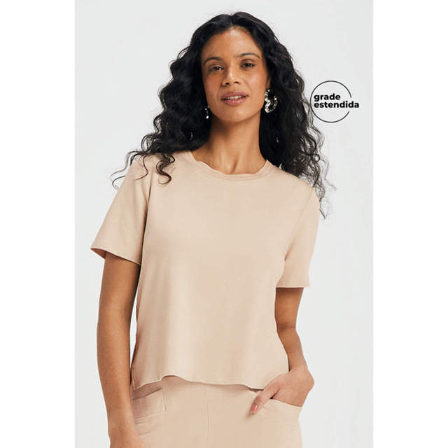 A Blusa Marialícia é ideal para quem busca praticidade e estilo no dia a dia. Confeccionada em moletinho de viscose com elastano, ela possui comprimento regular, decote redondo em retilínea e mangas curtas. Além disso, pequenas aberturas laterais trazem um charme extra ao look. Perfeito para composições casuais com calças ou shorts, invista nessa peça-chave para ocasiões mais descontraídas!Modelo veste tamanho P. Medidas da modelo: 88cm de busto; 94cm de quadril; e 65cm de cintura.