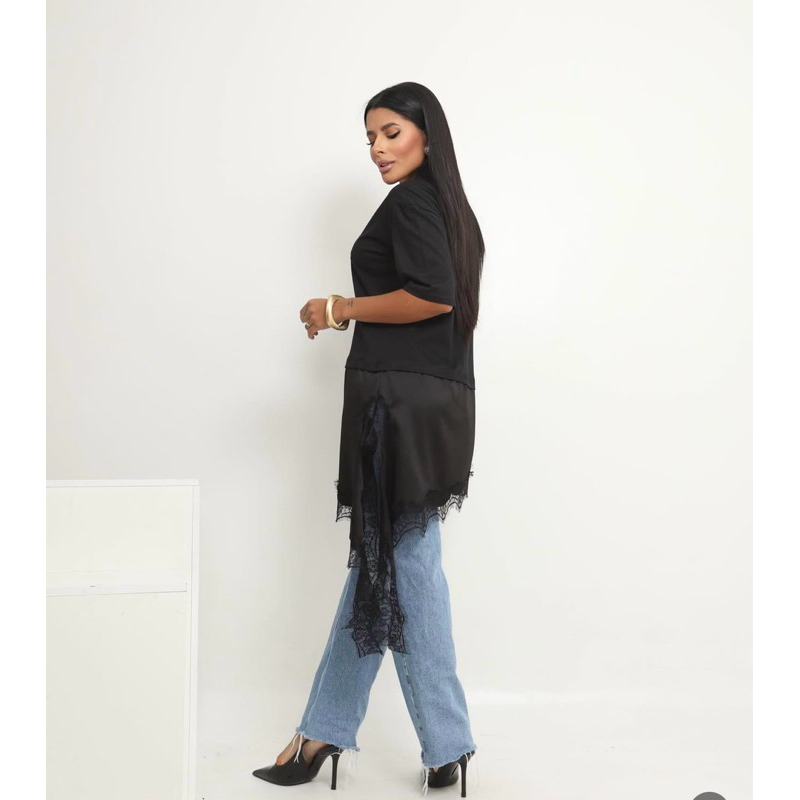 Blusa Feminina alongada com Detalhe em Cetim e Renda P M G GG