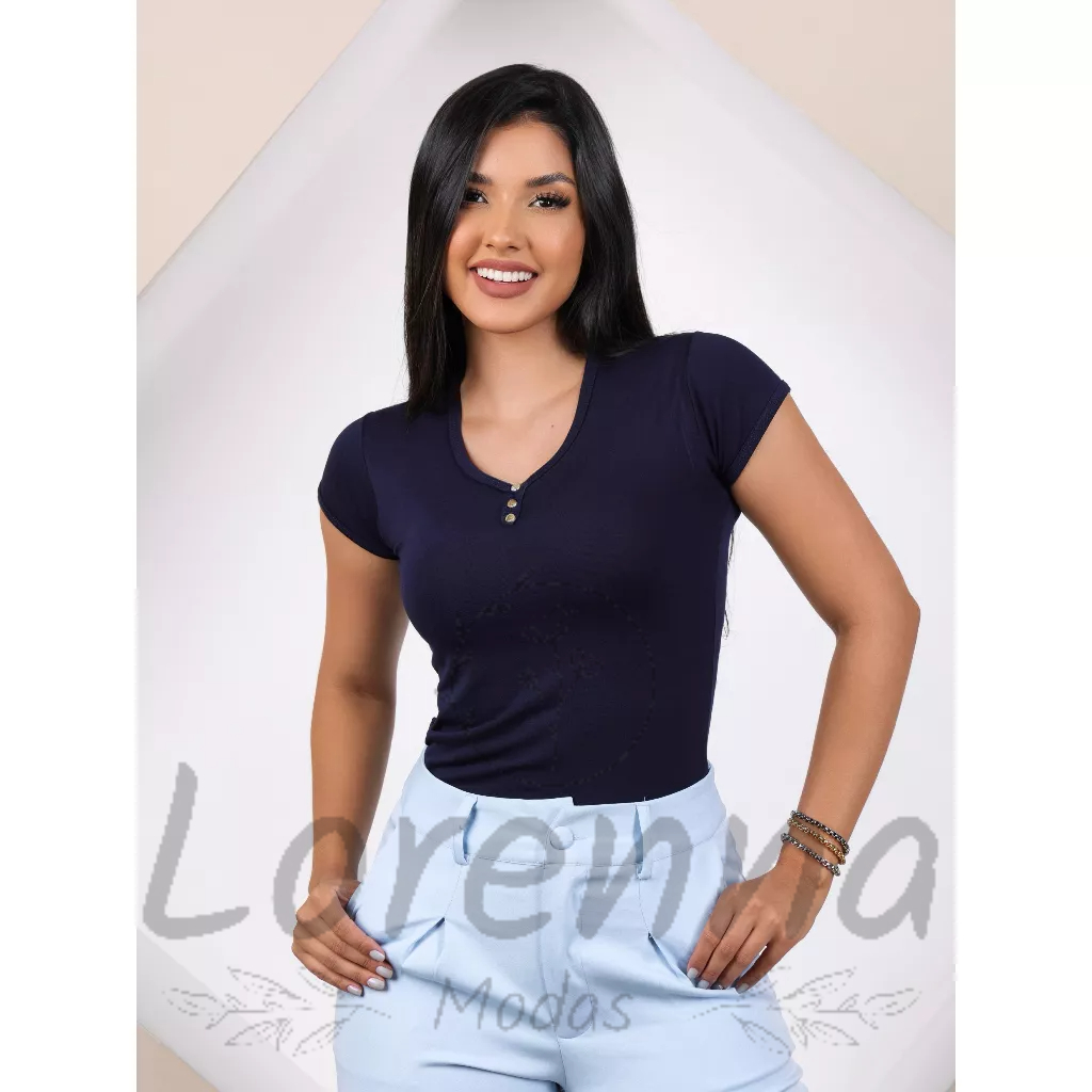Blusa Feminina Baby Look Blusinha Basica com Manga e Botão