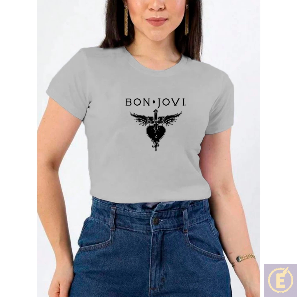 Blusa Feminina Baby Look Estampada Banda de Rock Bon Jovi 100% Algodão Tumblr Blogueira
