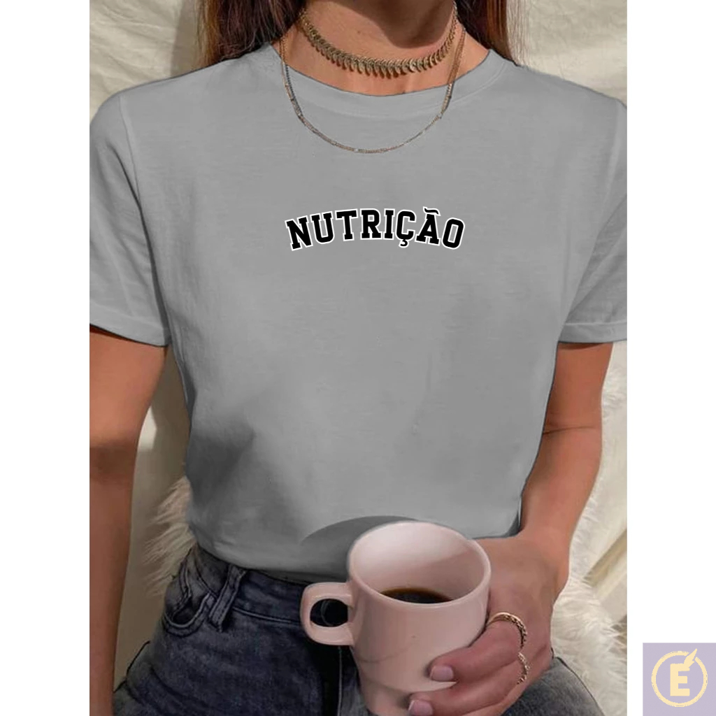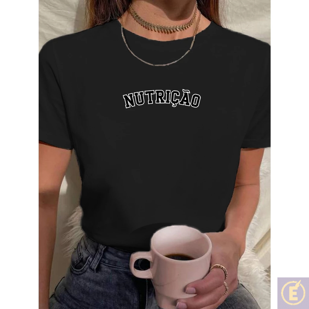 Blusa Feminina Baby Look Estampada Faculdade Nutrição College Profissão 100% Algodão