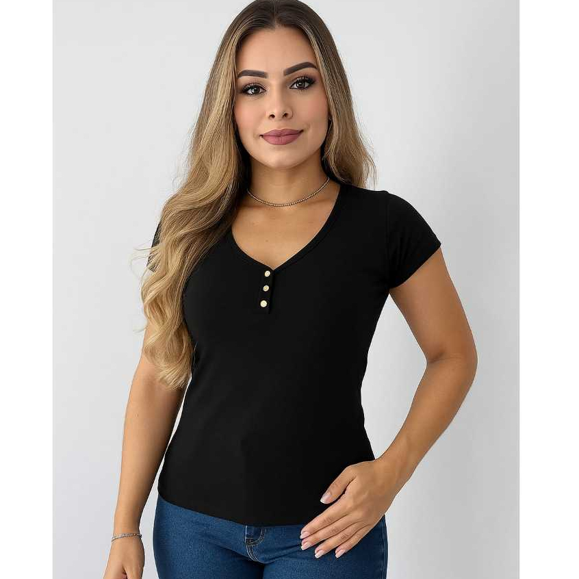 Sabe aquela blusa que veste bem, combina com tudo e te deixa linda em qualquer ocasião? É essa aqui! Confeccionada em tecido vicolycra, ela abraça o corpo com suavidade, tem toque macio e valoriza sua silhueta com muito conforto. O decote em V com botões decorativos é um detalhe delicado que faz toda a diferença — simples, mas cheio de charme. Essa peça é ideal para montar looks casuais, usos diários, ou até combinar com jeans, saias e shorts para um visual moderno e versátil. Vista e sinta a diferença. Vai ser amor à primeira prova! blusa feminina vicolycra | blusa básica com botões | blusa feminina decote V | blusa justa feminina | blusa confortável e estilosa | moda feminina casual | blusa para usar com jeans | look casual feminino | blusa dia a dia