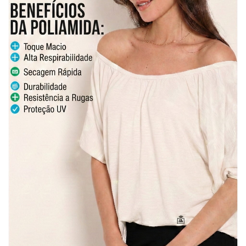 Blusa Feminina Básica Poliamida Ombro a Ombro Manga Morcego Blusinha Elegante Leve e Confortável