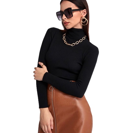 Blusa Feminina Básica Tricot Cacharrel Suéter Gola Alta