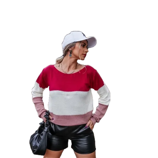 Blusa Feminina Blogueira Instagram Tricolor Tricô Tricot Sueter manga longa moda Inverno Kelly