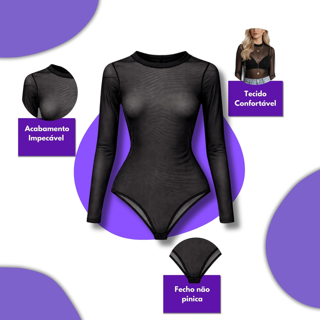 Blusa Feminina Bory Blogueirinha Moda Feminina Body Feminino Tule Camisa Luxo Manga Longa