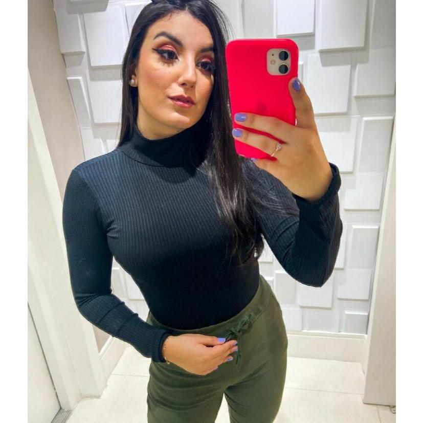 Blusa Feminina Cacharrel Segunda Pele Manga Longa Tecido Canelado