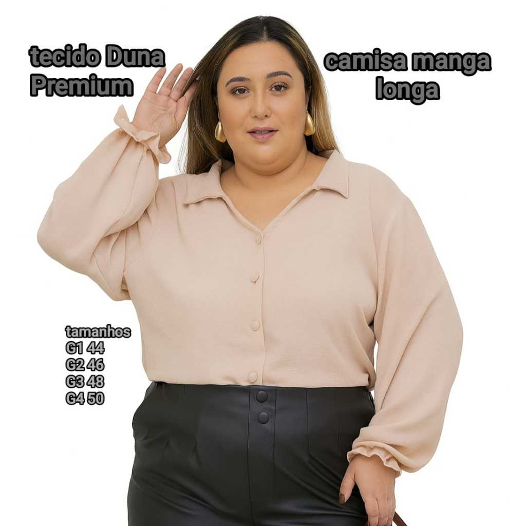 Camisa Feminina Plus Size – Elegância e Conforto o Ano Todo Apresentamos a nossa camisa feminina plus size, feita para mulheres jovens e modernas que vestem até o tamanho 48. Confeccionada com tecido Duna premium, de alta qualidade, essa peça lisa e sem estampas é perfeita para quem busca sofisticação e versatilidade. Ideal para todas as estações, essa camisa pode ser usada tanto no inverno quanto no verão, proporcionando conforto e um caimento impecável. Seu design atemporal permite combinações elegantes para diversas ocasiões, seja para um look casual ou mais refinado. ✔ Material premium: tecido Duna de alta durabilidade e toque suave ✔ Versatilidade: pode ser usada em qualquer estação ✔ Modelagem Plus Size: valoriza as curvas com elegância e conforto ✔ Disponibilidade imediata: enviamos para todo o Brasil em 24 horas ✔ Fabricação própria: qualidade garantida do início ao fim Adicione essa peça essencial ao seu guarda-roupa e aproveite um visual moderno e sofisticado em qualquer ocasião! ✨