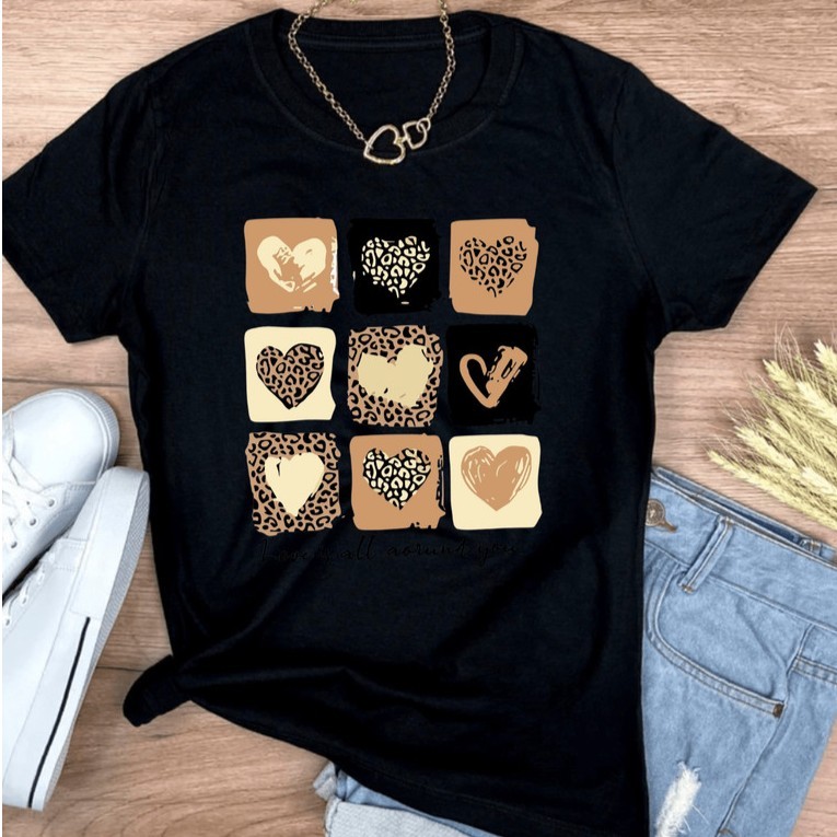 Blusa Feminina Camiseta T-shirt Love Coração Animal Print Tendencia Babylook 100% Algodão