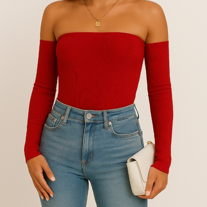 Blusa Feminina Ombro a Ombro Manga Longa em Suplex Garanta um visual moderno e sofisticado com nossa blusa feminina ombro a ombro, perfeita para compor looks estilosos em qualquer ocasião! Confeccionada em tecido Suplex de alta qualidade, ela oferece conforto, elasticidade e ótimo caimento no corpo. Com modelagem ajustada e mangas longas, essa peça valoriza o colo e traz um toque elegante ao visual. Ideal para quem ama estar na moda com praticidade! Características do produto: Tecido: Suplex (macio, flexível e confortável) Modelagem: Ombro a ombro com manga longa Tamanhos disponíveis: P, M, G e GG Cores: Preto, branco, vermelho e marrom Dica de uso: Combine com jeans de cintura alta, saias ou peças de alfaiataria para um look casual chic ou mais sofisticado.