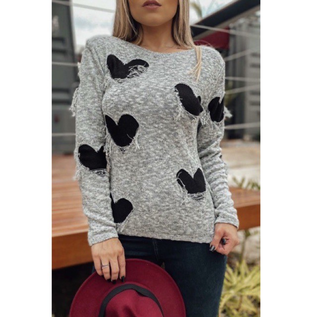 Blusa Feminina coração Vazado Tricot Trico Mousse fio flame Moda Inverno Blogueira