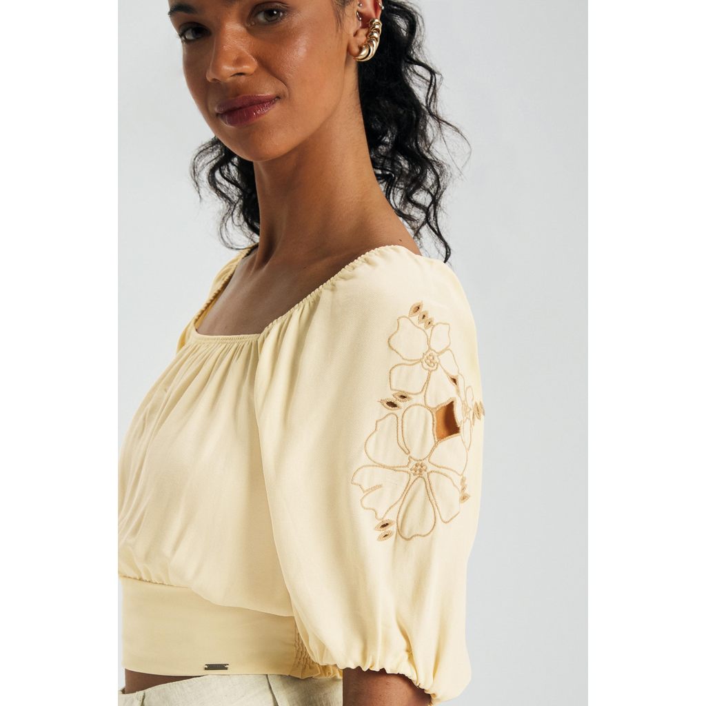 Blusa Feminina Cropped Bordado Vazado Marialícia Amarelo