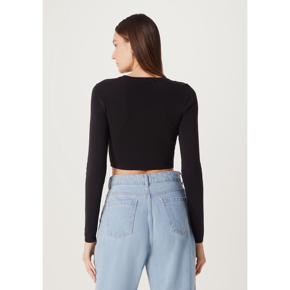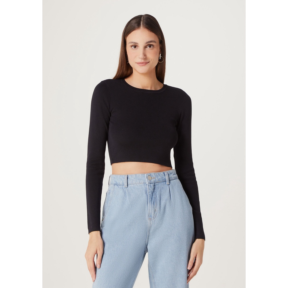 Blusa Feminina Cropped Manga Longa Em Tricot Hering