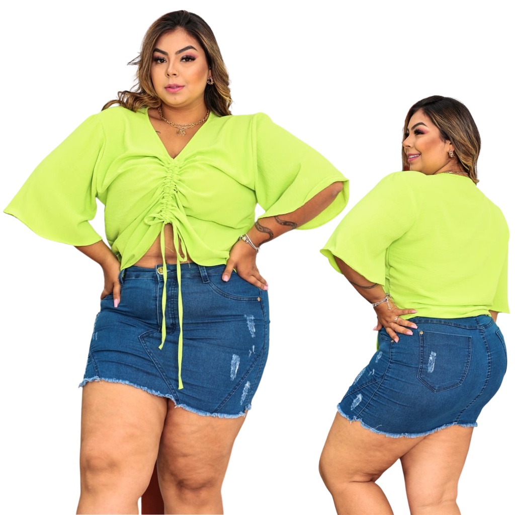 Blusa Feminina Cropped Plus Size Verão Franzido Ajustavel