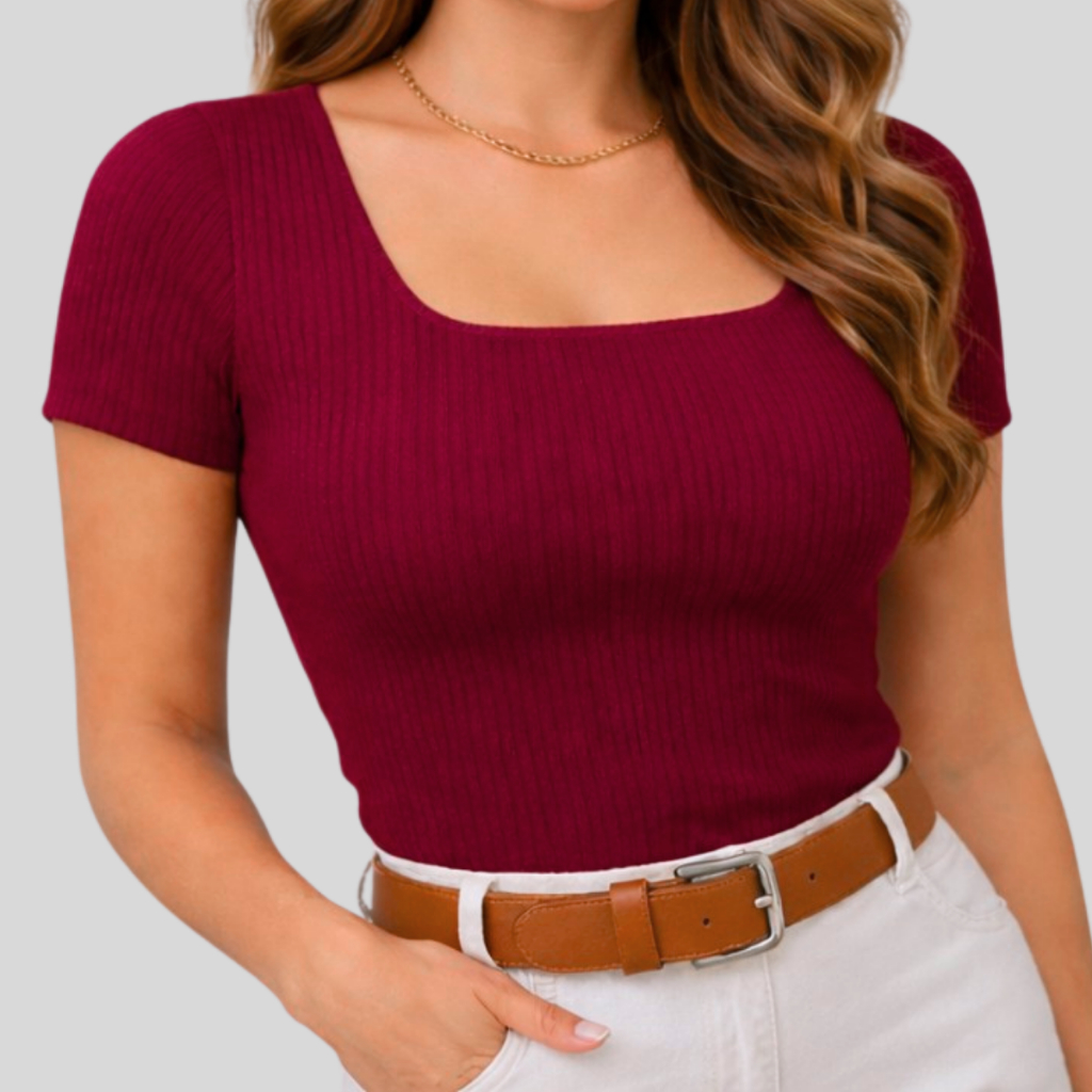 Blusa Feminina Decote Quadrado Blusinha Canelada Básica Manga Curta Trabalho Elegante Dia a Dia