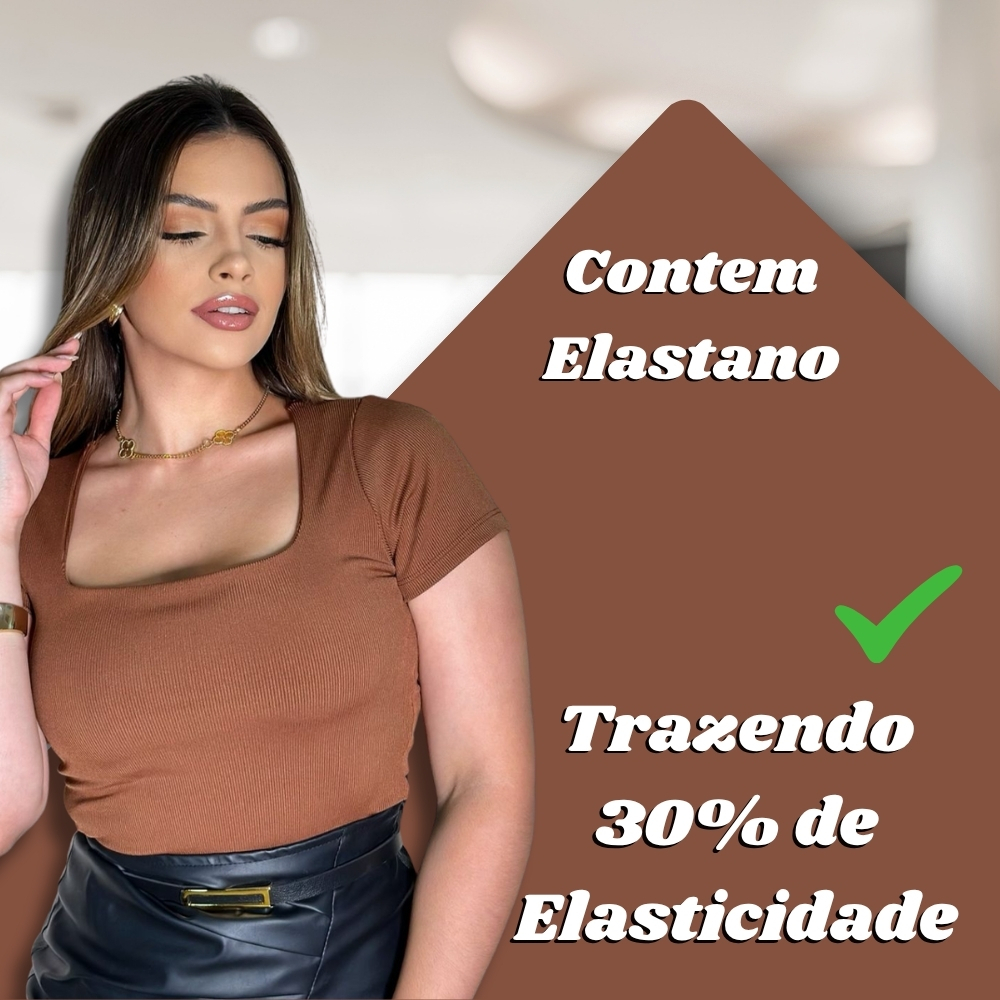 Blusa Feminina Decote Quadrado Ribana Canelada Listrada • Manga Curta Elegante Premium Casual