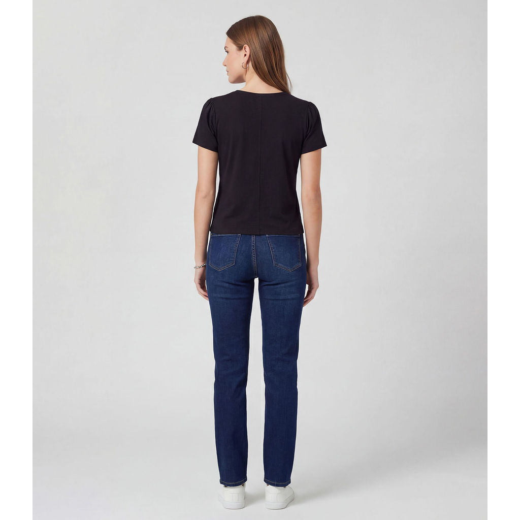 Blusa feminina confeccionada em visco tricot infinita cor, composta por 98% viscose e 2% elastano, proporcionando toque macio, leveza e ótimo caimento. Possui mangas curtas e decote redondo, garantindo conforto e praticidade para o uso diário. A estampa frontal acrescenta estilo e personalidade à peça, tornando-a versátil para diversas combinações. Ideal para compor looks casuais ou mais arrumados, unindo elegância, conforto e modernidade.