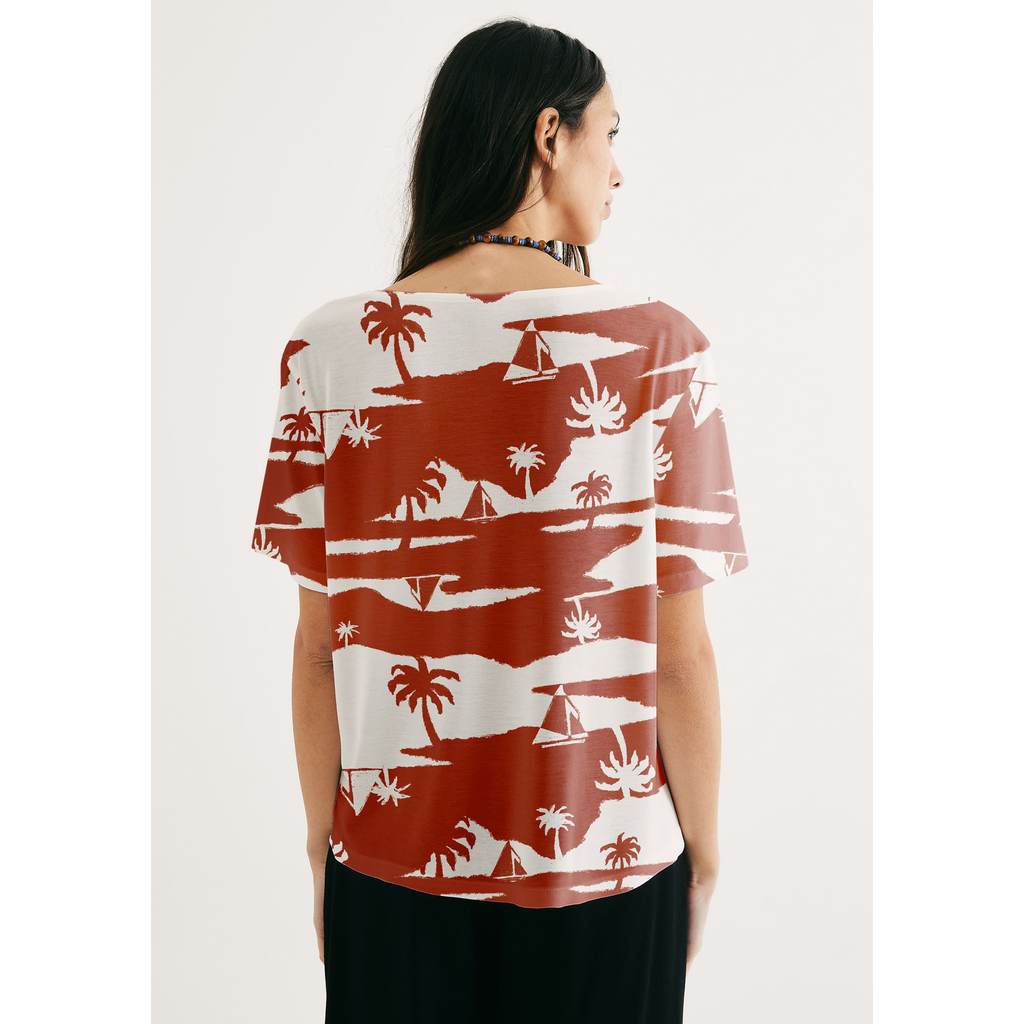 Frescor e leveza para os dias mais quentes! Essa blusa é confeccionada em malha leve de viscose, com toque suave e caimento fluido. Possui modelagem regular, que garante conforto ao vestir, manga curta e decote V, que valoriza o colo com delicadeza. A estampa exclusiva adiciona um toque de cor e personalidade ao visual.Detalhes da peça:Malha de viscoseModelagem regularManga curtaDecote VEstampada