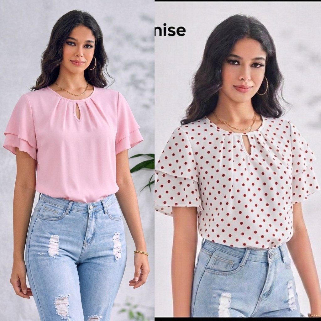 Blusa Feminina Estampada e Lisa em Crepe Leve – Modelos Variados com Poás e bolinha