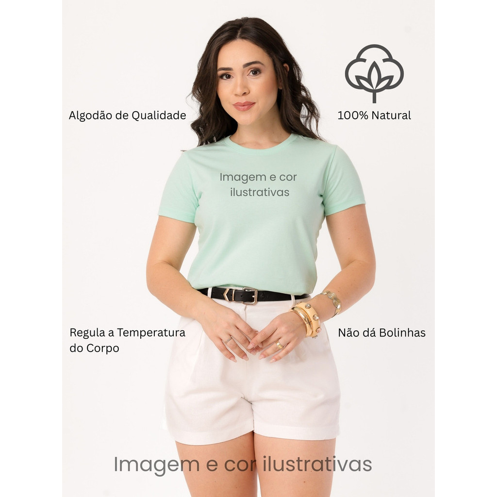 Camiseta feminina de algodão premium, perfeita para o dia a dia com muito conforto e estilo. Essa camiseta em algodão penteado possui toque macio, caimento leve e prazeroso, garantindo bem-estar em todos os benefícios. Pode ser usada como blusa feminina básica, babylook casual ou até como uma blusa feminina elegante em algodão, se adaptando facilmente à moda feminina. Também é muito procurada como camiseta cristã, evangélica, gospel ou católica, ideal para quem busca fé e estilo no mesmo look. Características - Composição: 100% algodão fio 30.1 penteado. - Nossa malha é pré-lavada, o que aumenta a durabilidade das tshirts. - Barras e mangas com costuras reforçadas para maior resistência. - Costuras duplas de ombro a ombro feitas em máquinas de alta tecnologia, oferecendo acabamento impecável. - Gola em ribana firme que mantém o formato mesmo após várias lavagens. - Modelagem versátil que se adapta a diferentes estilos, de uma blusinha feminina casual a uma camiseta cristã elegante, perfeita para compor um look casual feminino ou para benefícios especiais de moda evangélica. Benefícios - Tecido natural que proporciona conforto térmico em qualquer estação. - Alta resistência e longa durabilidade, mesmo após muitos usos. - Por ser penteado, nosso algodão não dá bolinhas, mantendo a camiseta feminina bonita por muito mais tempo. - Por ser pré-lavada, a malha não encolhe e não desbota após a lavagem. - Estilo atemporal que combina facilmente com diferentes peças do guarda-roupa, desde uma blusa básica feminina até uma camiseta gospel ou camiseta católica. - São T-Shirts com excelente custo-benefício com qualidade premium. Recomendações de Lavagem - Lavar à mão. - Secar a t-shirt na sombra. - Não utilize máquina de lavar sua tshirt. - Não utilize alvejante ou produtos com cloro nas suas camisetas. - Passe suas t-shirts com ferro em temperatura baixa ou média, sempre do avesso para proteger estampas e aplicações. - Evite torcer sua blusa para não deformar a modelagem. - Guardar dobrado em local arejado, evitando pendurar por longos períodos.