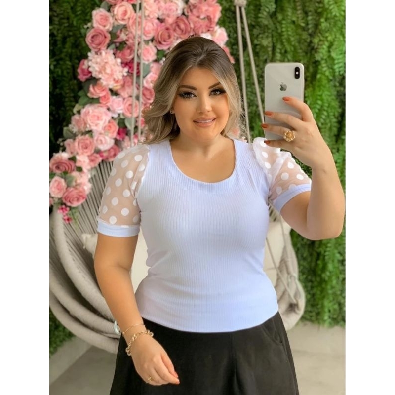 Blusa feminina evangélica manga tule kit 5 blusas caneladas GG