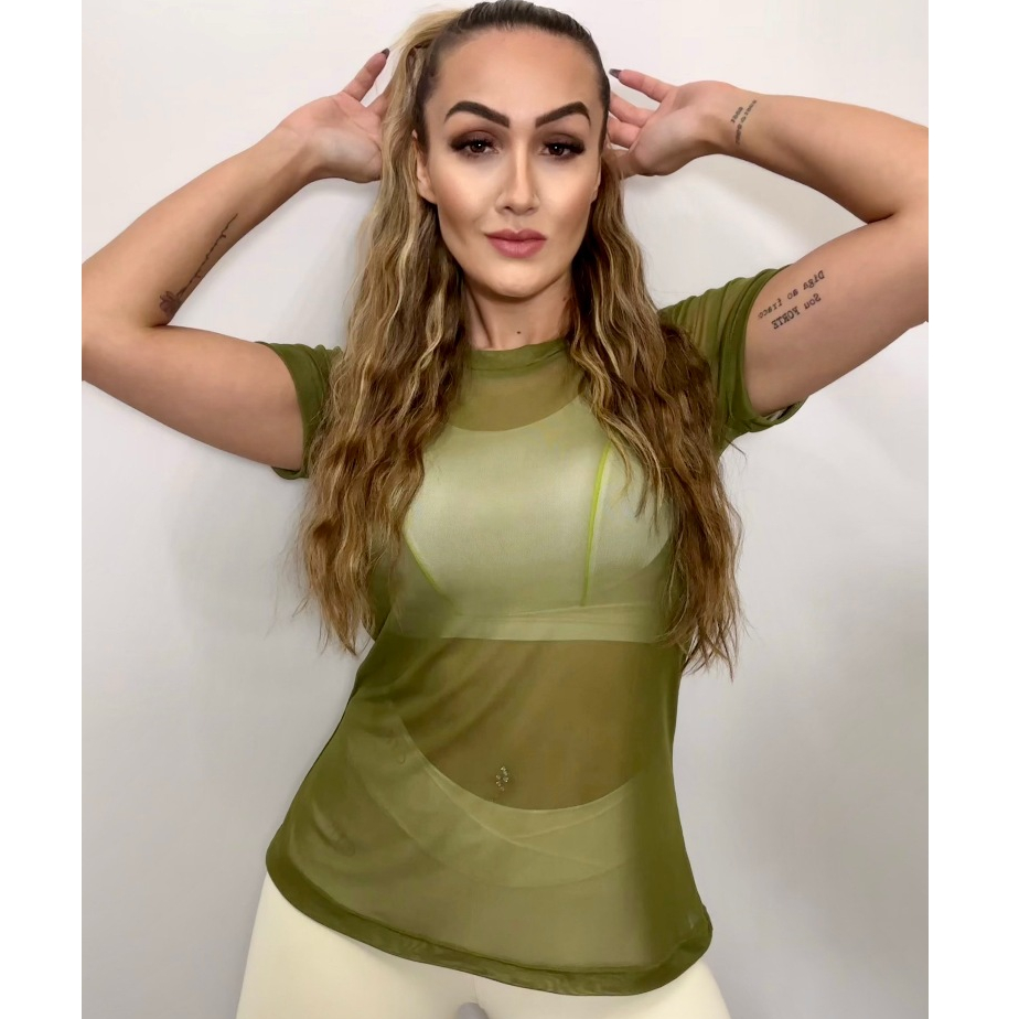 Blusa Feminina Fitness Camisão Fitness Transparente Tule Academia