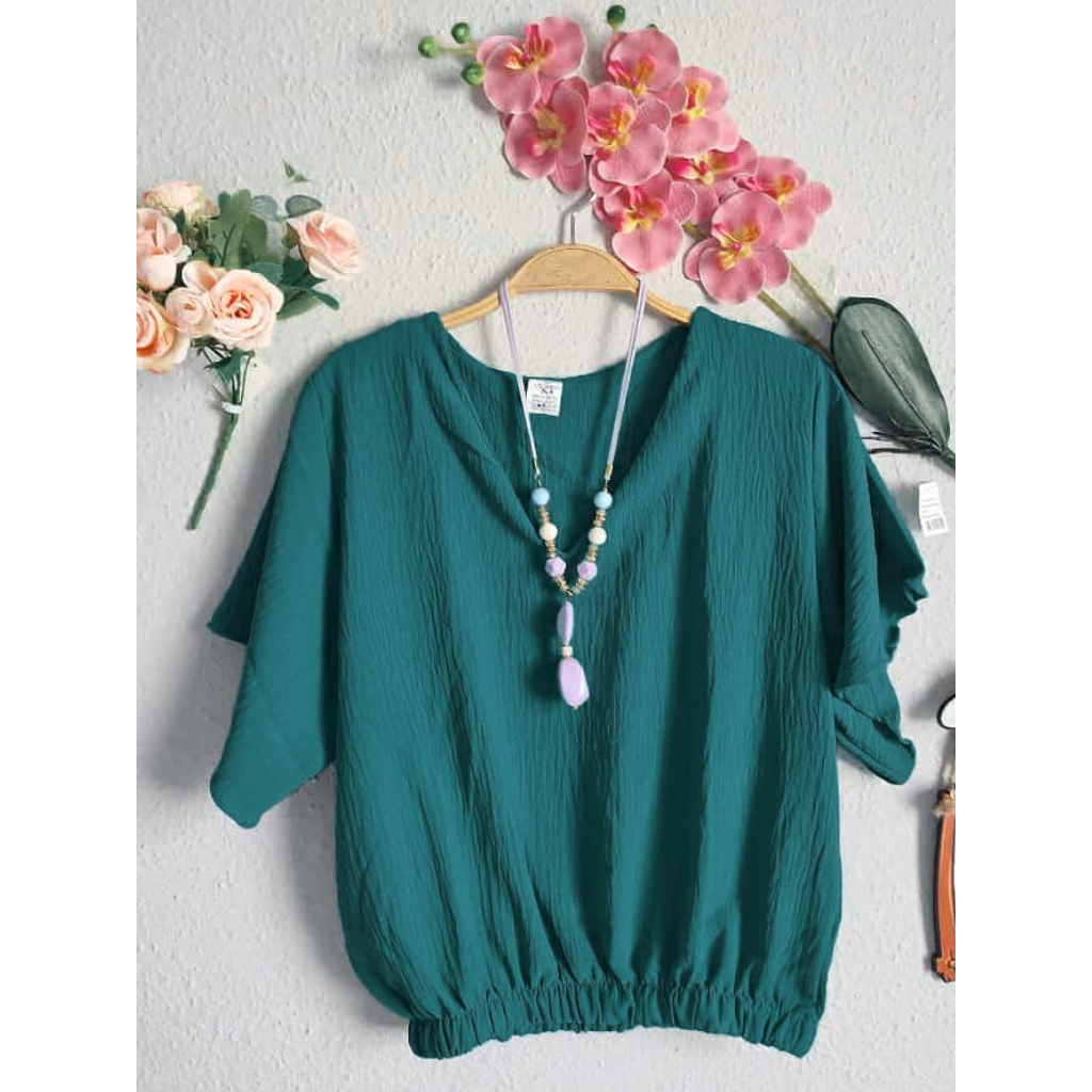 Blusa Feminina Gola V Básica Tecido Duna Elástico Na Cintura Tendência