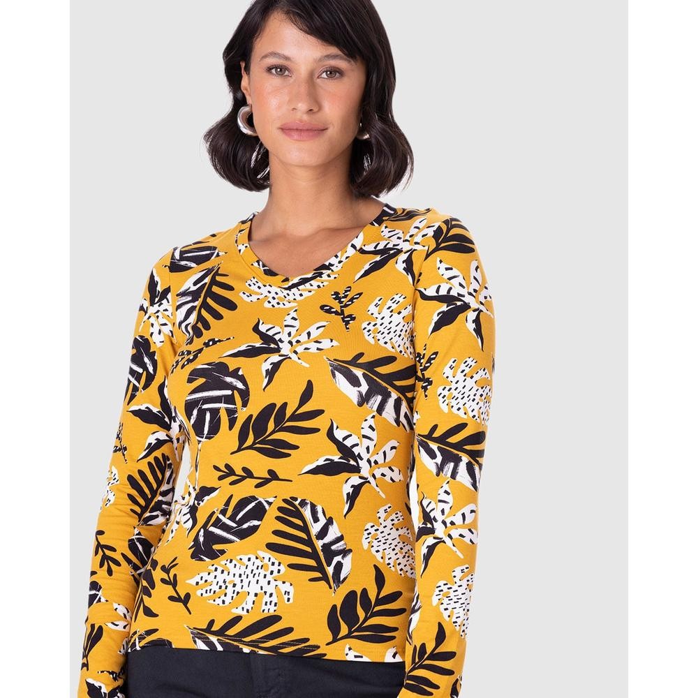 Blusa feminina feita em viscose stretch conforto. Apresentando uma blusa estampada com caimento mais ajustado ao corpo, é a peça perfeita para todas as ocasiões. Também possuindo gola V e mangas longas, ela foi feita em viscose stretch conforto, que tem caimento impecável, super confortável e versátil para os dias mais quentes. É Queridinha por aqui e sempre está presente nas nossas coleções. Sendo uma blusa curinga para o dia a dia, que possibilita muitas combinações. • Blusa Ajustada em Viscose Stretch • Gola V • Mangas Longas