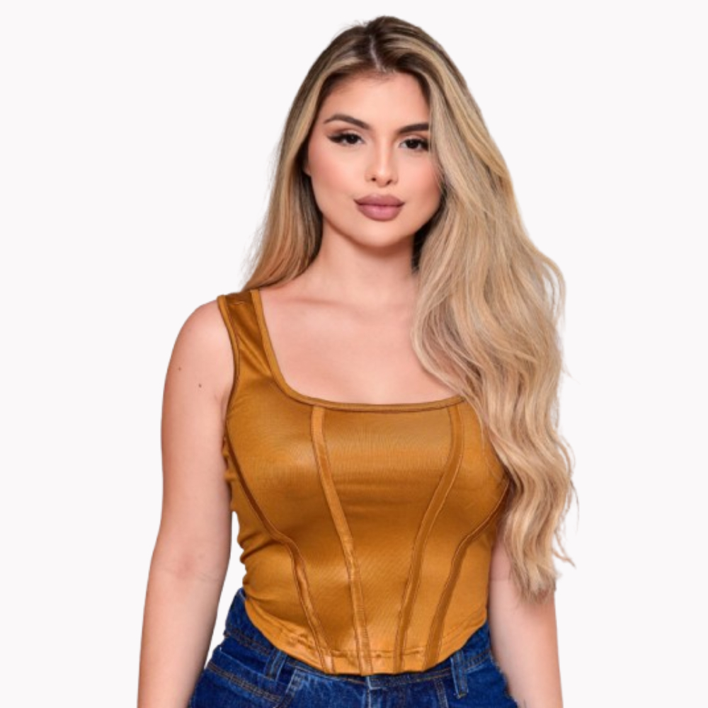 Blusa feminina imitando corselet cropped blogueira balada cirrê Carnaval promoção