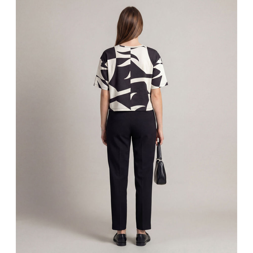 Blusa Feminina Infinita Cor, confeccionada em refinado Visco Maquinetado Rotativo. Apresenta base lisa com estampa rotativa, babados delicados e bainha no comprimento que confere movimento e leveza. Decote redondo, cavas deslocadas e bainha nas mangas garantem caimento impecável, enquanto o recorte central nas costas valoriza o design. Ideal para looks frescos e fluidos, com sofisticação e charme sutil.