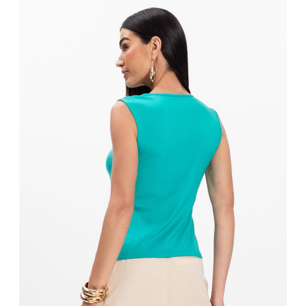 Blusa Feminina Infinita Cor, confeccionada em cotton leve e confortável. Conta com decote frontal em V na reta, cavas com acabamento em friso e comprimento que vai um pouco abaixo do umbigo, garantindo estilo e caimento moderno.