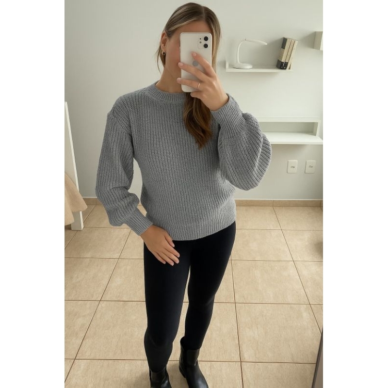 BLUSA FEMININA INVERNO TRICÔ MANGA LONGA BALÃO MODERNA LUXO DESPOJADA FRIO SUÉTER QUENTINHA
