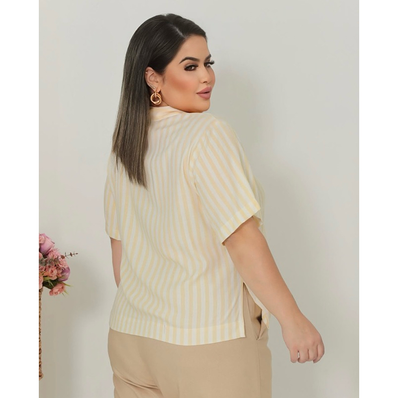 CAMISA SOCIAL MANGA CURTA PLUS SIZE FEMININA Tecido: Viscolinho *Tamanho: G1 (46-48) veste até 124 de busto *Tamanho: G2 (50-52) veste até 130 de busto *Tamanho: G3 (52-54) veste até 135 de busto Tecido leve e super confortável.