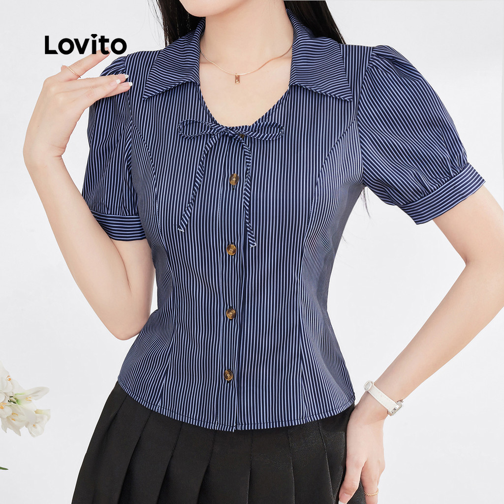 ✅Destaques -❤️Estampa -❤️Fechamento Frontal Com Botões -❤️Amarração Frontal -❤️Macio E Confortável -❤️Ideal Para Primavera E Verão -❤️Detalhes Com Botões ✅Descrição Estampa: Listrada Estilo: Casual Tamanhos Plus Size: Não Material: Poliéster Composição: 100% Poliéster Modelagem: Ajustada Transparência: Não Elasticidade: Sem Elasticidade Origem: China Continental ✅O Pacote Inclui 1 Blusa ✅Apresentação Da Lovito A Lovito É Uma Marca Emergente Que Acredita No Poder Feminino, Comprometida Em Oferecer Opções De Roupas Modernas E Acessíveis Para Diferentes Estilos, Necessidades E Identidades. Acreditamos Que A Moda Deve Ser Divertida, Libertadora E Fazer Você Se Sentir Bem. Afinal, O Melhor Acessório Para Qualquer Look É A Autoconfiança. ✅Notas De Compra Por Favor, Consulte A Tabela De Tamanhos Antes De Comprar. Pode Haver Uma Pequena Diferença Devido À Medição Manual. Todas As Fotos Dos Produtos Nesta Loja São Fotos Reais. Devido À Iluminação E À Diferença De Tela, Pequenas Variações De Cor E Textura Do Produto Podem Ser Normais. Siga Nossa Loja E Descubra Novos Itens E As Melhores Ofertas Para Você! Se Tiver Alguma Dúvida Ou Problema, Entre Em Contato Conosco. 😊