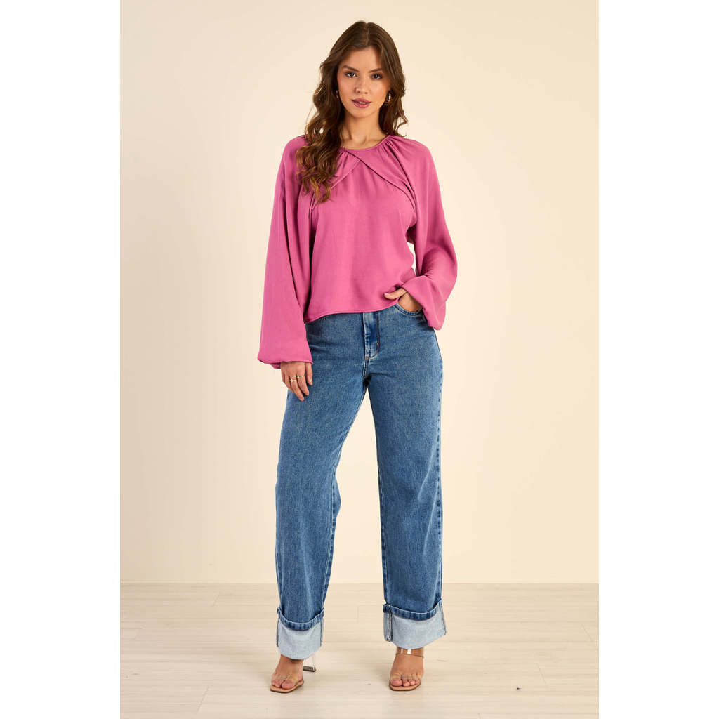 Blusa Feminina Manga Bufante Com Transpasse Marialícia Rosa