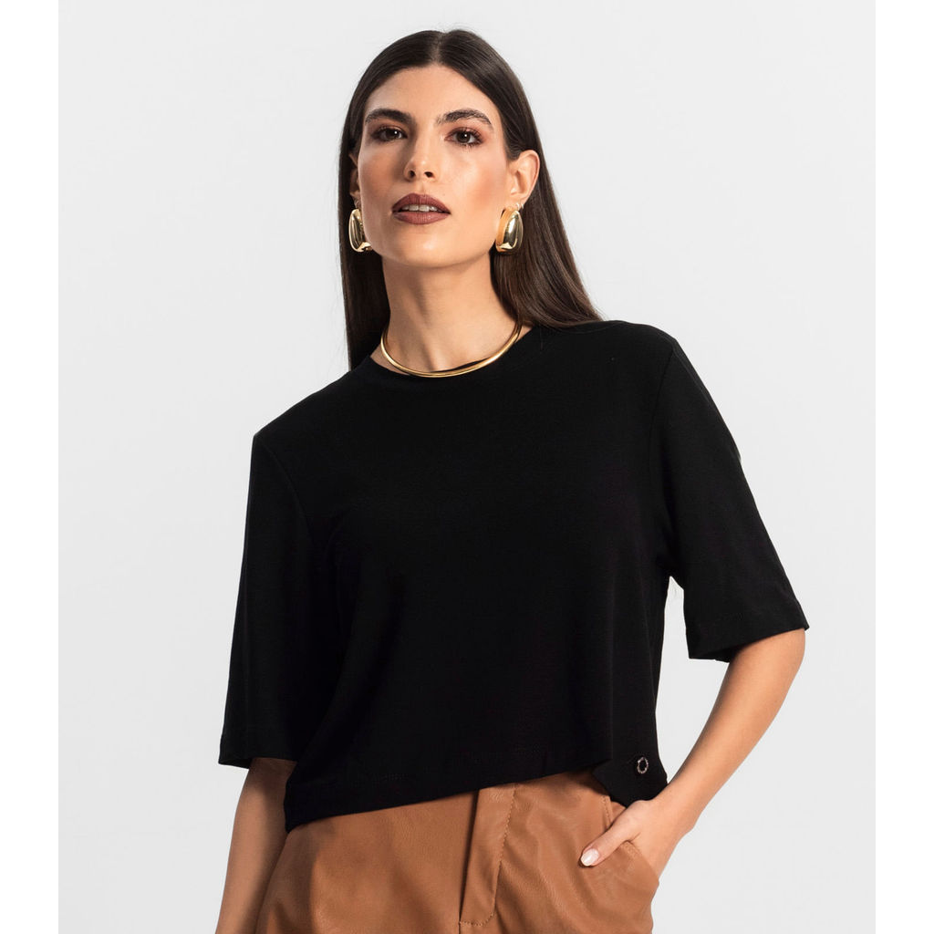 Blusa Feminina Manga Curta em Molecotton Endless Preto