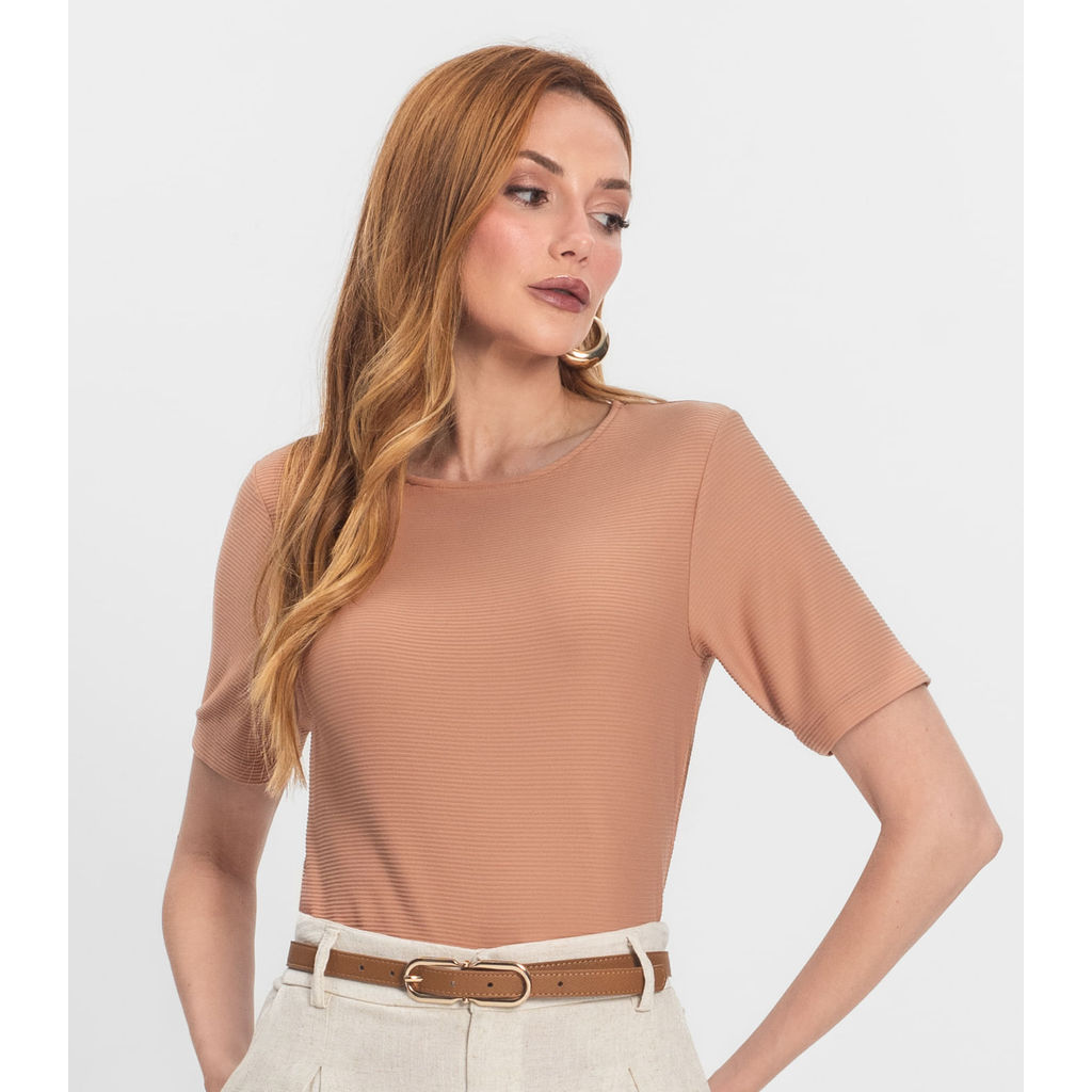 Blusa Feminina Manga Curta em Poly Endless Marrom